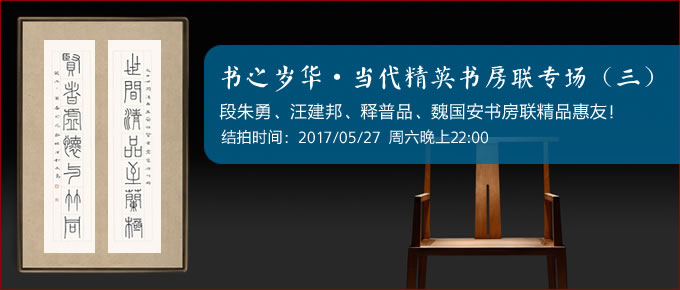 预览 魏国安 书房联《清新隽永联》400元起拍(结拍时间:2017/05/27 周六晚上22:00) attach_img digest 论坛总务 2017-5-24 20:18 3677 论坛总务 2017-5-24 20:18